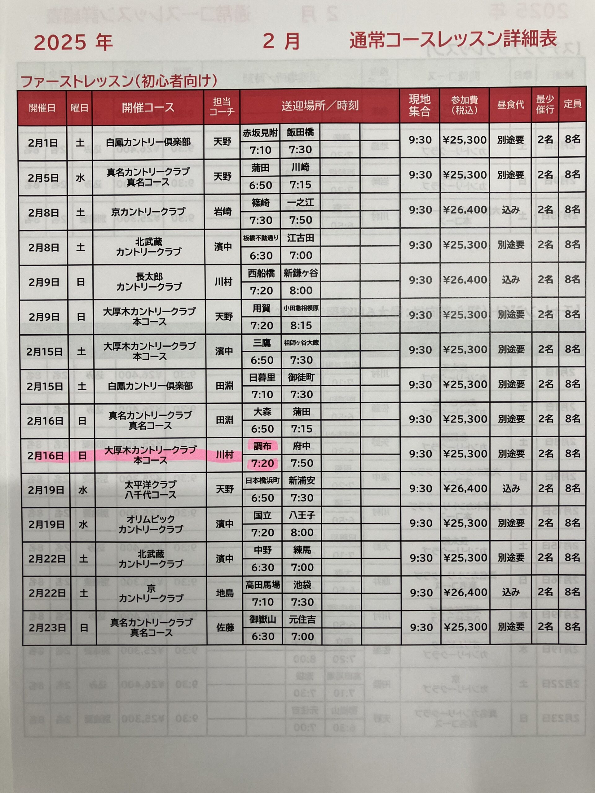 調布発のコースレッスン多数あります!