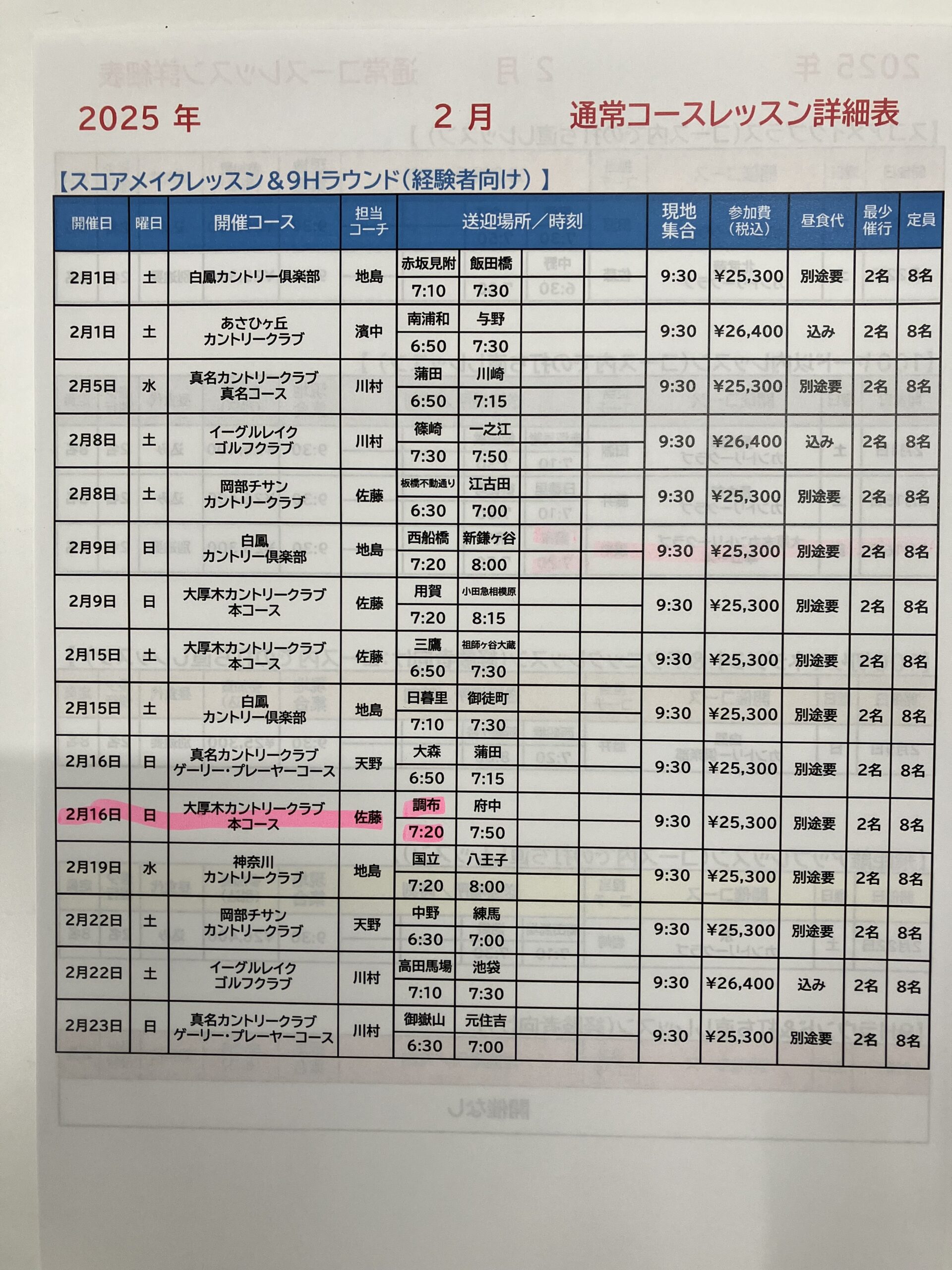 2月のコースレッスンですが、
