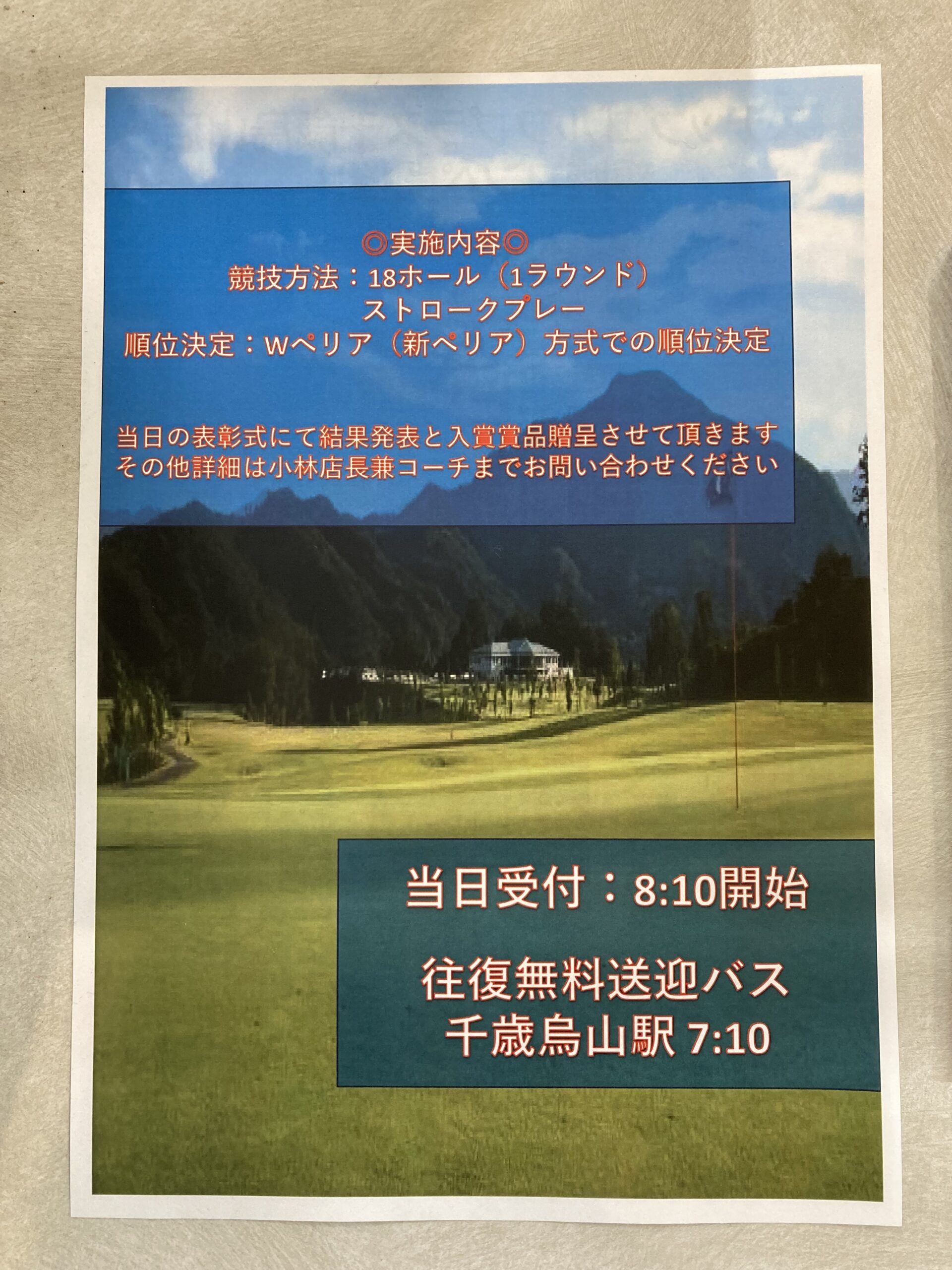 3/20(木・祝日)に千歳烏山親睦コンペ実施します!