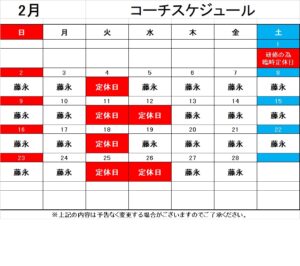 2月のコーチスケジュールになります(^^)