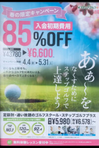 ステップゴルフ南船橋店では只今、春の入会キャンペーンを実施しております。 入会金がなんと85%OFF の¥6,600でのご案内になります。この機会にゴルフを始めてください!