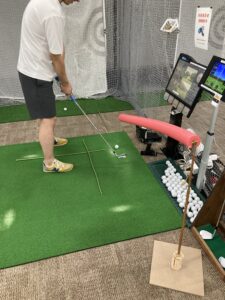 ボールの後方に置いてクラブが当たらない様に下ろす練習