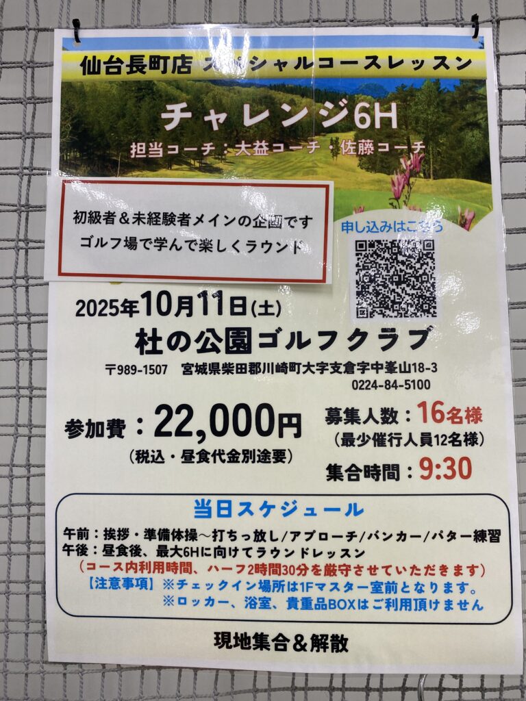 10/11㈯仙台長町店SPコースレッスン「チャレンジ6H」参加者受付中!!