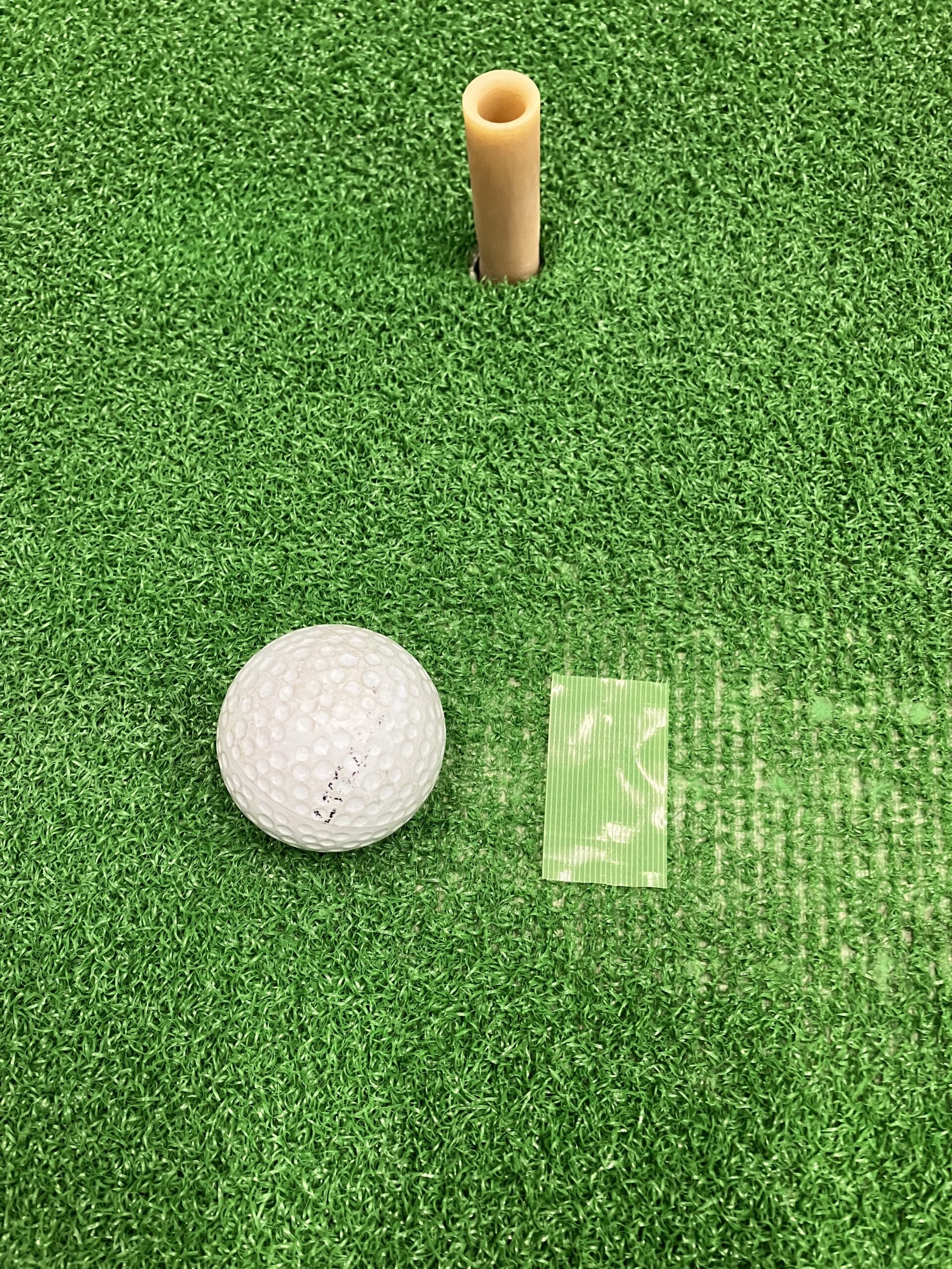 添付写真の貼り方を参照に、ボール後ろにテープを貼って