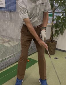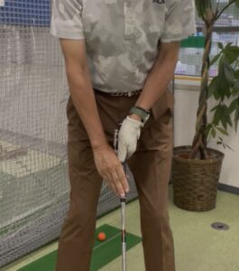 右手はクラブに添えているだけにして肩と左腕で振ってみましょう。
