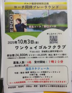「野口コーチ同伴プレーラウンド 」in ワンウェイゴルフクラブ