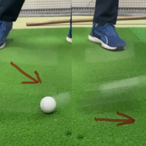 しっかりボールと芝生(マット)を同時にコンタクト出来ている方は、ユーティリティーも同じように上から打ち込むように打ってみましょう。