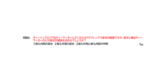 Q36. ティーイングエリアはティーマーカーとそこから 2 クラブレングス後方の範囲ですが、前方と横はティーマーカーのどの部分が範囲を定めるでしょうか?