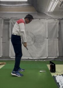 ②結果、ボールに当たる時はアウトからインに向かって振ってしまう