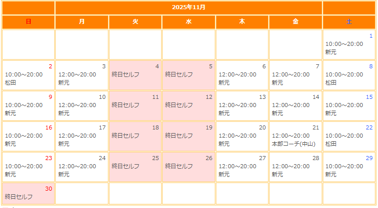 コーチ対応時間/ 平日12:00~20:00休憩15:00~16:00