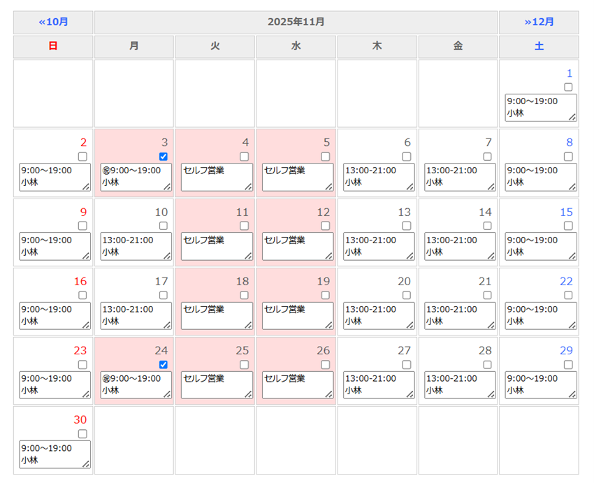 ※11/3(月)と11/24(月)は、祝日スケジュールです。