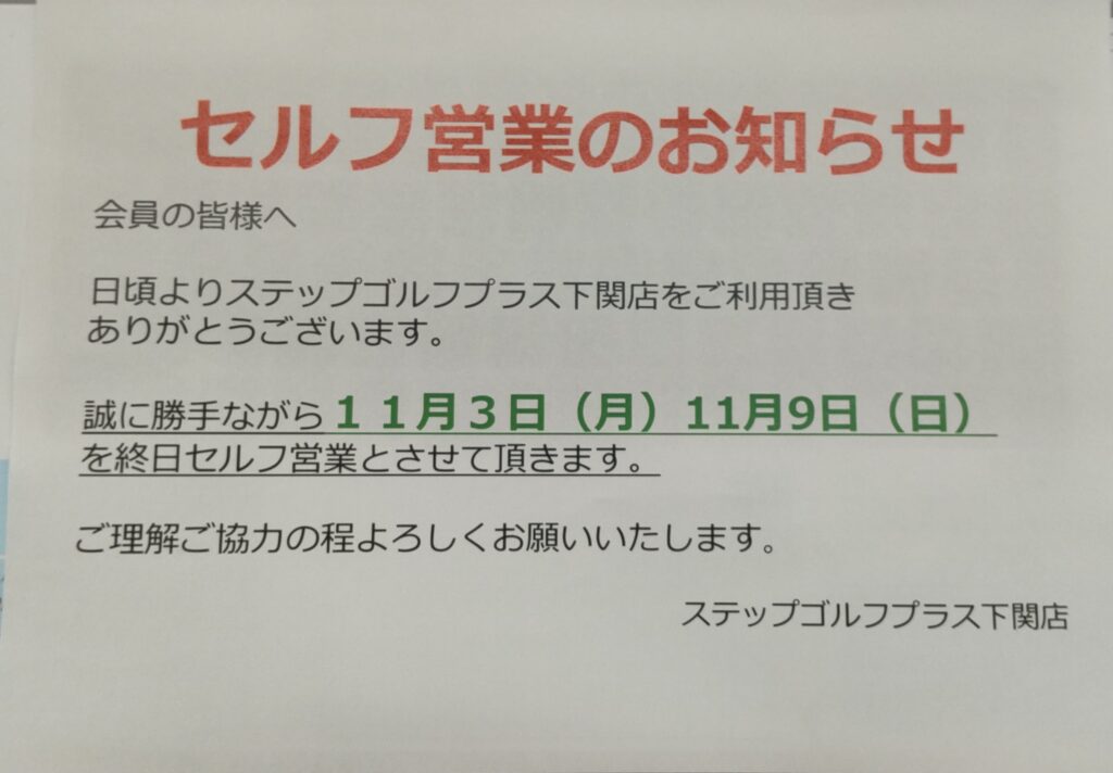 11月3日㈪と11月9日(日)を終日セルフ営業とさせて頂きます。