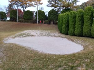 打ち下ろし、打ち上げ、池がからむホールあり、戦略性が試されるコースでした!