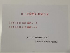11/13(木)コーチ変更のお知らせ