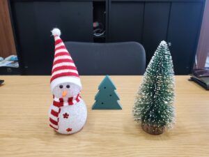大きなクリスマスツリーは置けませんが、小さな装飾でクリスマス感を出してみました 😀