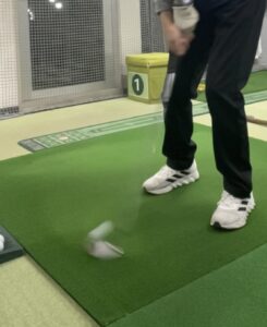 インドアではティーにボールを乗せて下をくぐるように打つ練習をしましょう。