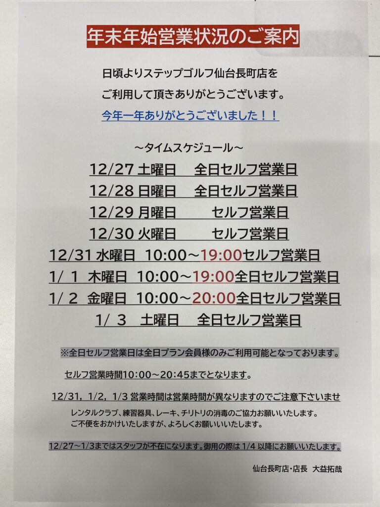 年末年始スケジュールについて