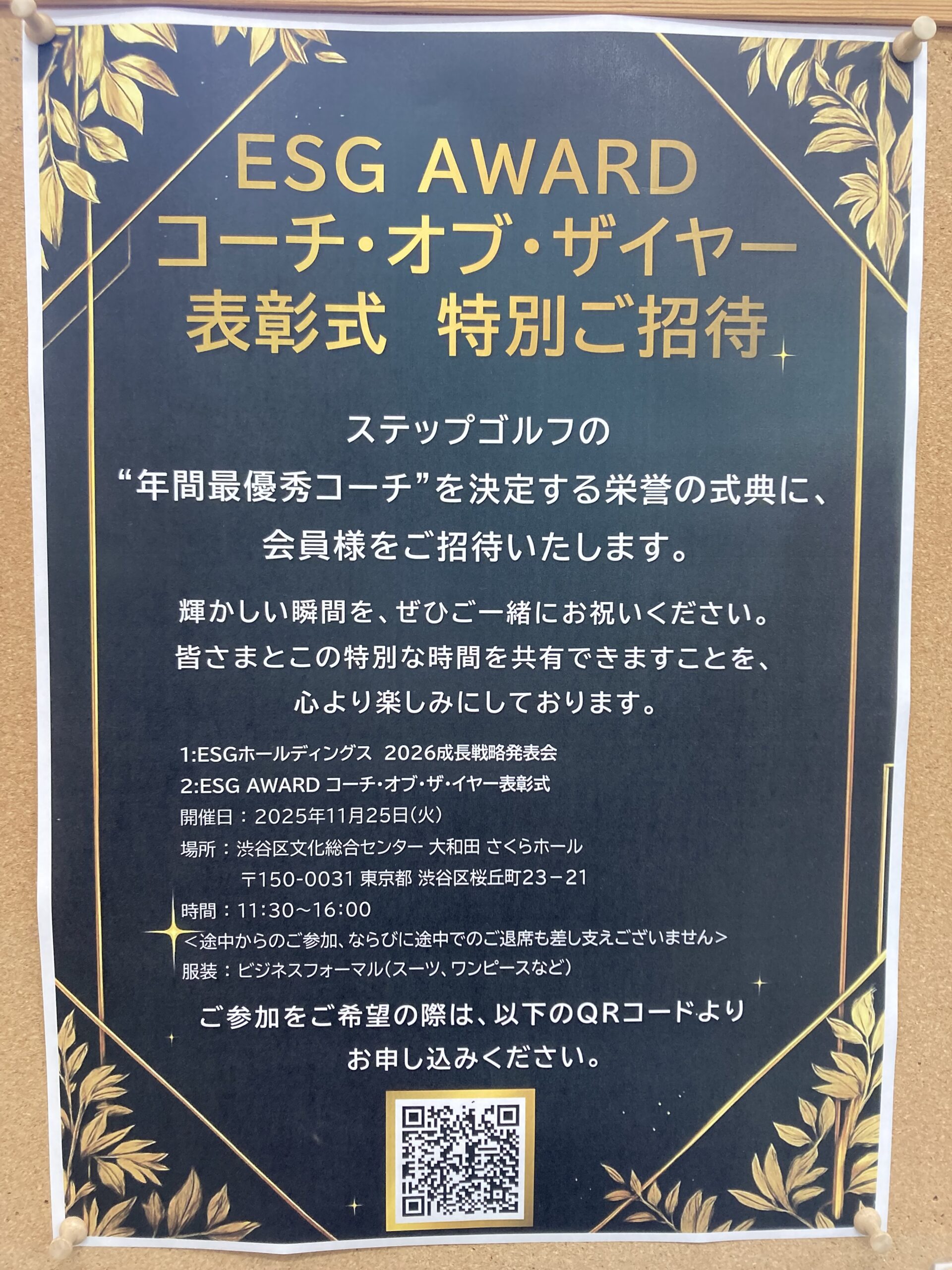 【綾瀬店】11/25(火) ESG AWARD コーチ・オブ・ザイヤー表彰式開催!