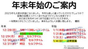 年内は全てのセルフタイムの方がご利用できます(28日は日曜日なので、、、)。