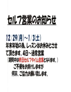 期間中は終日、セルフ営業。4日~通常レッスンに営業になります。