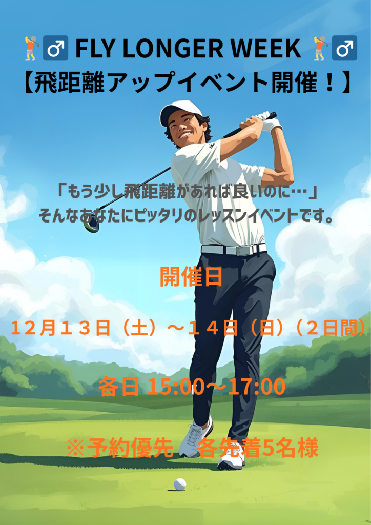 12月13日㈯14日㈰にドライバー飛距離アップとアプローチ特化のスペシャルレッスンを開催します!