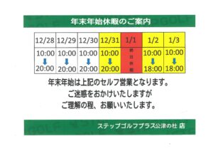 年末年始のご案内~ステップゴルフプラス公津の杜店~