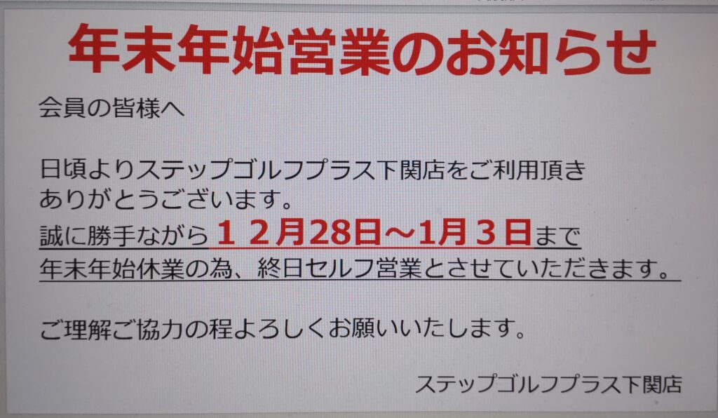 12月28日㈰~1月3日㈯まで終日セルフ営業となります。