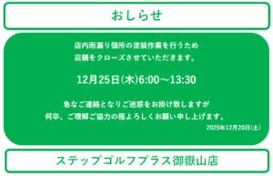 ステップゴルフプラス御嶽山店の金子です。