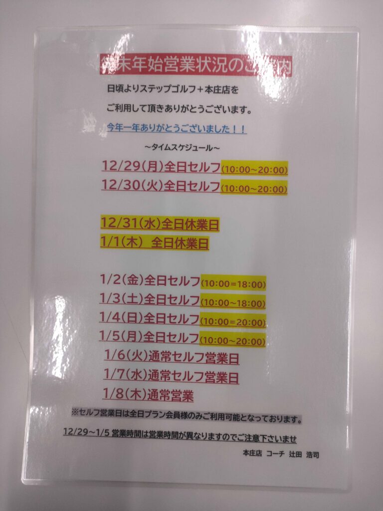 さて、本庄店では年末年始を下記の内容にて営業時間の変更をさせて頂きます。