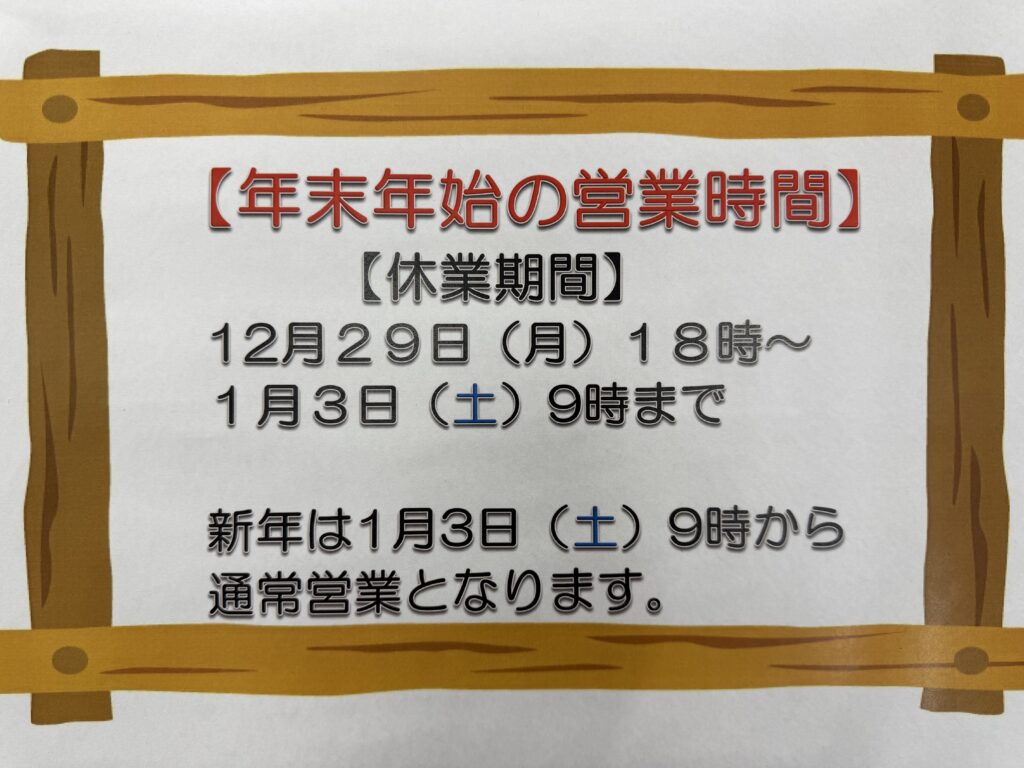 🟢年末年始の営業時間🟢