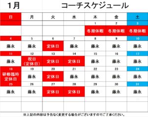 2026年1月コーチスケジュールになります。