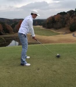 上着を着たままショットすると体が回りづらくて手打ちスイングなりがちです。