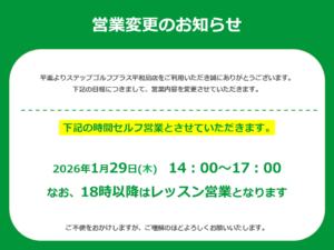 明日1/29(木)ですが、社内ミーティングのため14:00~17:00までのレッスンタイムが、セルフ営業になります。