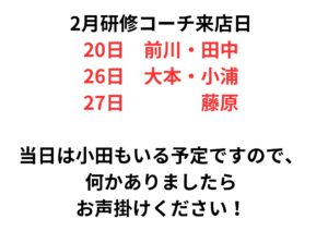 2月の研修コーチ来店予定日です
