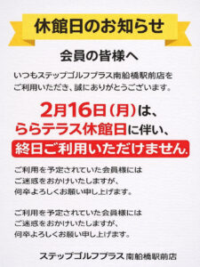 いつもステップゴルフプラス南船橋駅前店をご利用いただき、誠にありがとうございます。