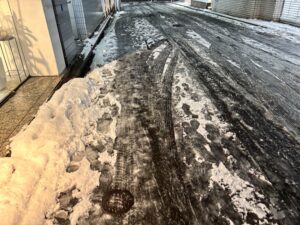水分を多く含んだ重たい雪でしたので、今朝にかけて路面がかなり凍結するかと思います。