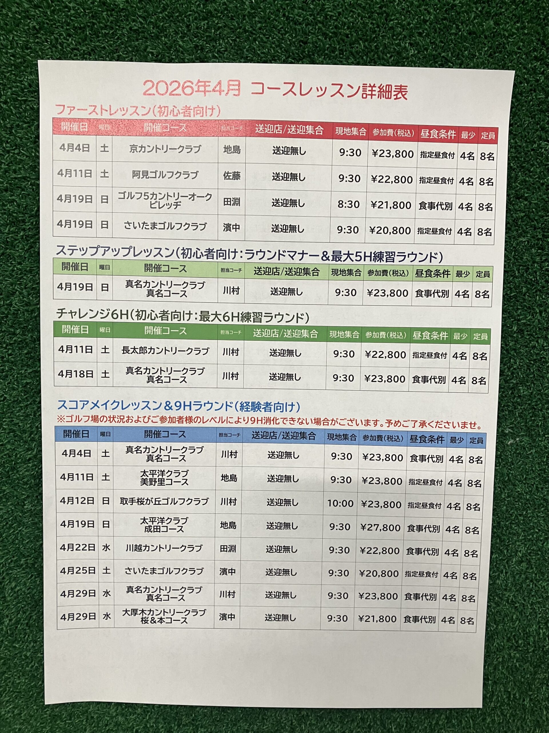 ステップゴルフにはファーストレッスンという初心者の方だけが参加できるコースレッスンをご用意しております!