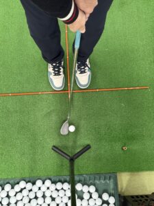 つま先を左に開き、若干オープン気味に。小さいショットほどオープンスタンスの度合いは大きく、距離が長いほどスクエアに。