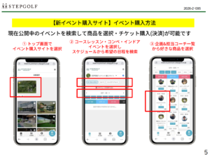 5日から新イベント購入サイトからコースレッスンやコンペの