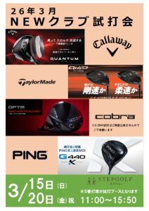 3月15日(日)、20日(金・祝)で新発売のクラブ試打会を行います。