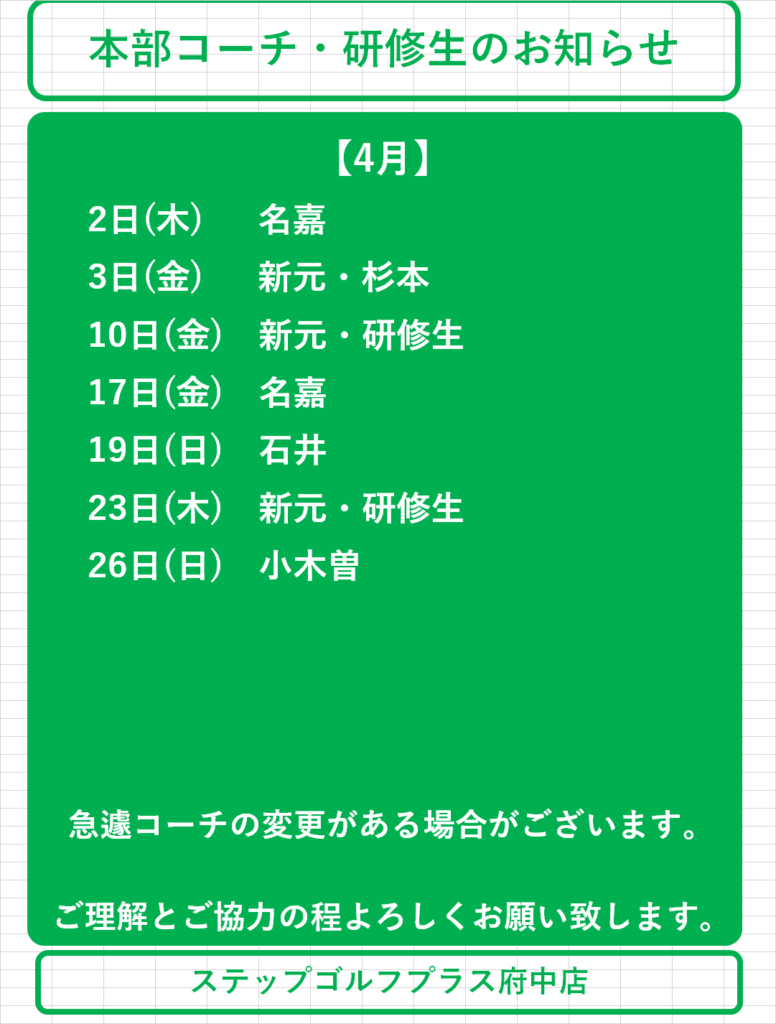 【お知らせ】4月コーチスケジュールについて