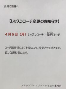 【重要】「4月レッスンスケジュール変更のお知らせです!!」