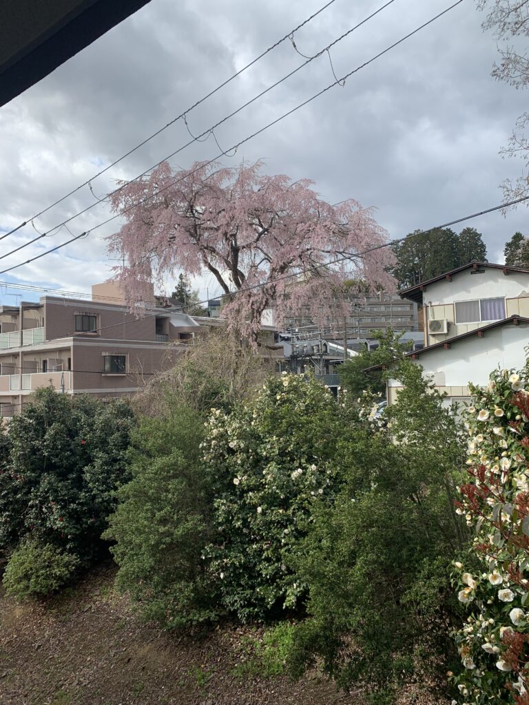 部屋から見えるしだれ桜が満開です🌸